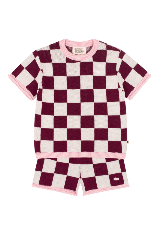 'No buttons, Julia' knit shorts in strawberry yoghurt